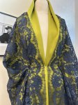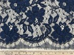 Navy Blue, reimbroidered, French made chantilly lace. This is Bluetiful Chantilly Lace. This is a traditionally made lace and so we have two lengths of it each of which is about 3-3/8th yards long by 46" wide,
