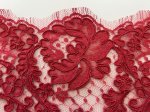 Lace, 24" Wide. This is Red Alençon Lace, a narrow lace with a defined border edge in a bright red.