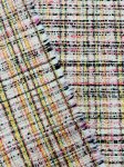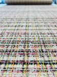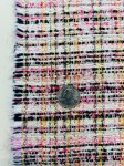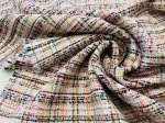 "European Multifiber Blend", 52" Wide, Made in Italy. This is a Boucle Jacquard, with white, black, pink and yellow with a tiny bit of sparkle.