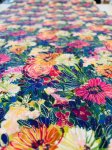 100% cotton, 45" wide. This is Sunset Meadow in Multi from Clothworks