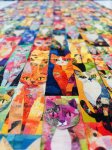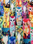 100% Cotton, 44" Wide. This is Crafty Cats Rainbow Sweets, a print from Hoffman featuring a rainbow collage of cats.