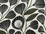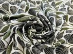 100% modal rayon, 60" wide, made in Korea for Cloud 9 Fabrics. This is Nadine, stylized graphic floral in black, white and olive green from the Marsh Havens Collection by Amy MacCready