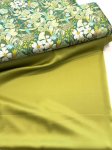 100% rayon, 54" wide, made in Korea for Art Gallery Fabrics. This is Stillwater Sunrise, shown paired with Spiced Lime 4 Ply Viscose Satin