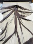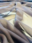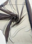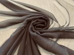 100% Silk, 44" Wide. This is a Crinkle Silk Chiffon in a dark brown that we called Espresso.