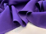 100% silk, 45" wide. This is a sumptuously beautiful 4 ply silk crepe in royal purple with silver thread woven into the selvage edge. An indication of its superior quality