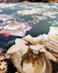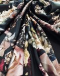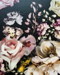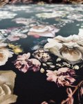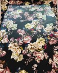 Silk/Lycra, 54" Wide. This is Scent of Roses, a slightly textural, 2-way stretch hammered silk showing photo accurate flowers including roses and orchids,