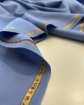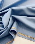 100% Wool, 60" Wide, Made in Australia. This is a lightweight Wool Gabardine in Cornflower Blue, the salvage reads "Diadem by Soria 100% Australian wool".